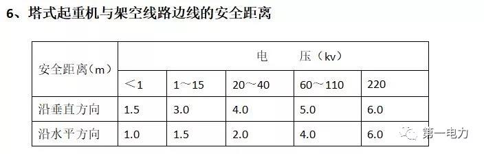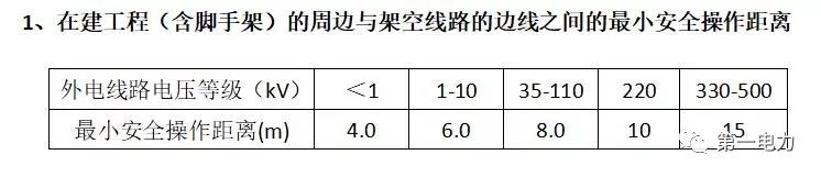 1、在建工程(含腳手架)的周邊與架空線路的邊線之間的最小安全操作距離
