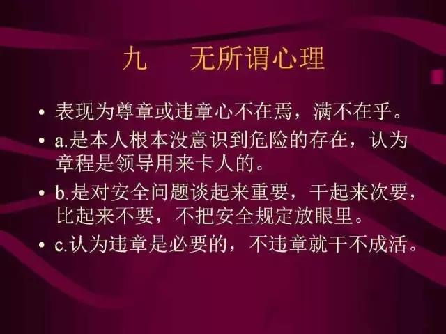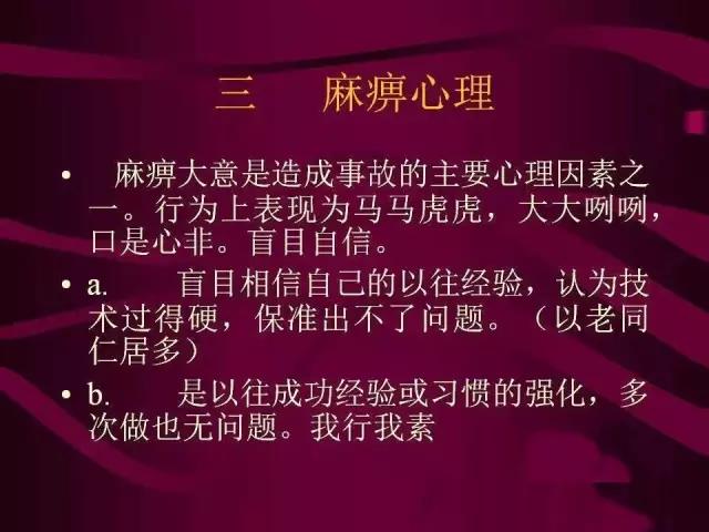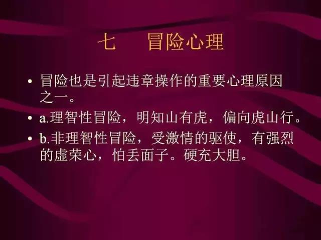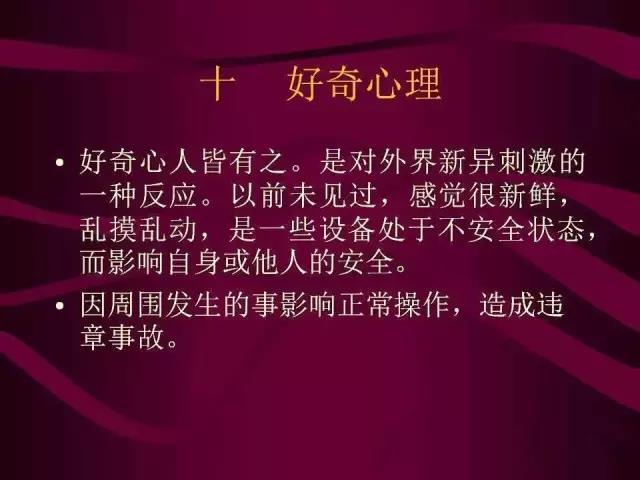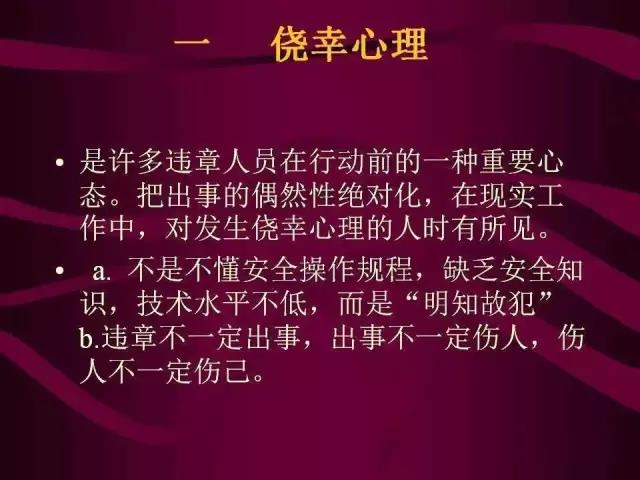 人是生產力中最活躍的因素,在導致事故發生的種種原因中,人的不安全因素是一種很重要的原因。要想搞好安全生產,防止事故發生,必須及時矯正各種影響安全的不良心理和糾正各種違章行為。這就要求我們研究并運用安全心理學,探索人的安全心理,從而減少人的不安全因素。