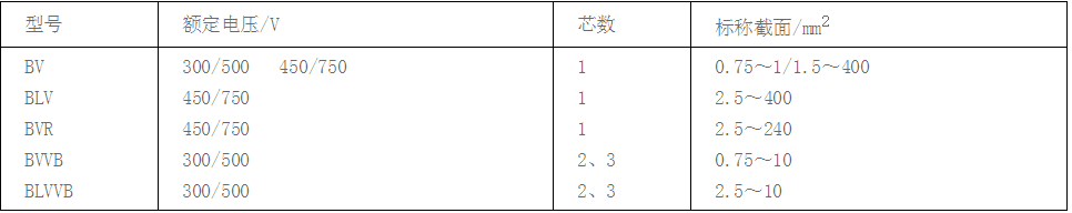BV型450/750V銅芯聚氯乙烯絕緣電線